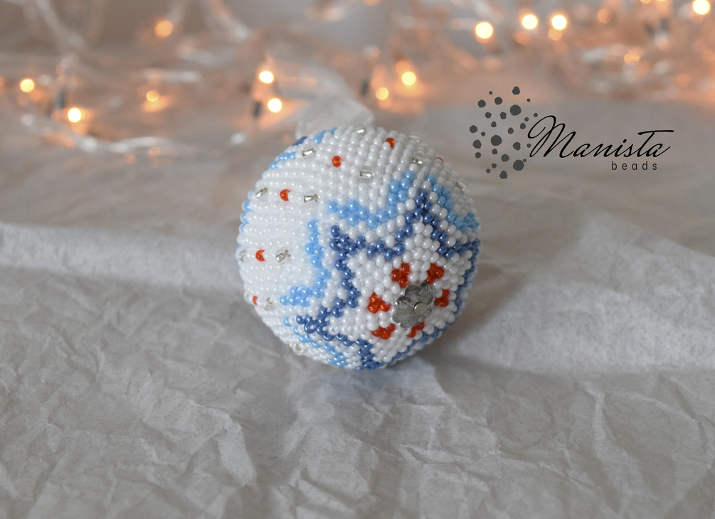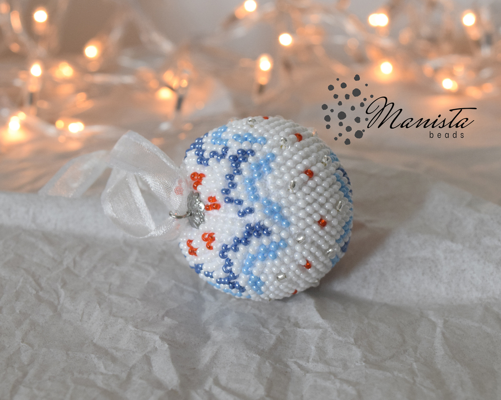 This is a digital/pdf crochet pattern for a beaded Christmas ball ornament.