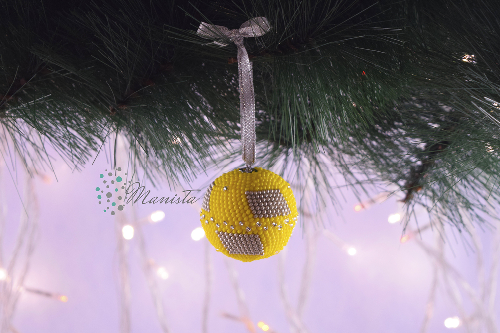 This is a digital/pdf crochet pattern for a colorful beaded Christmas ball ornament.