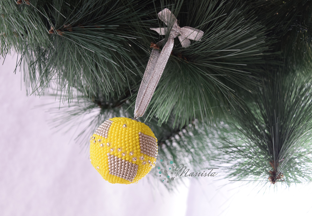 This is a digital/pdf crochet pattern for a colorful beaded Christmas ball ornament.